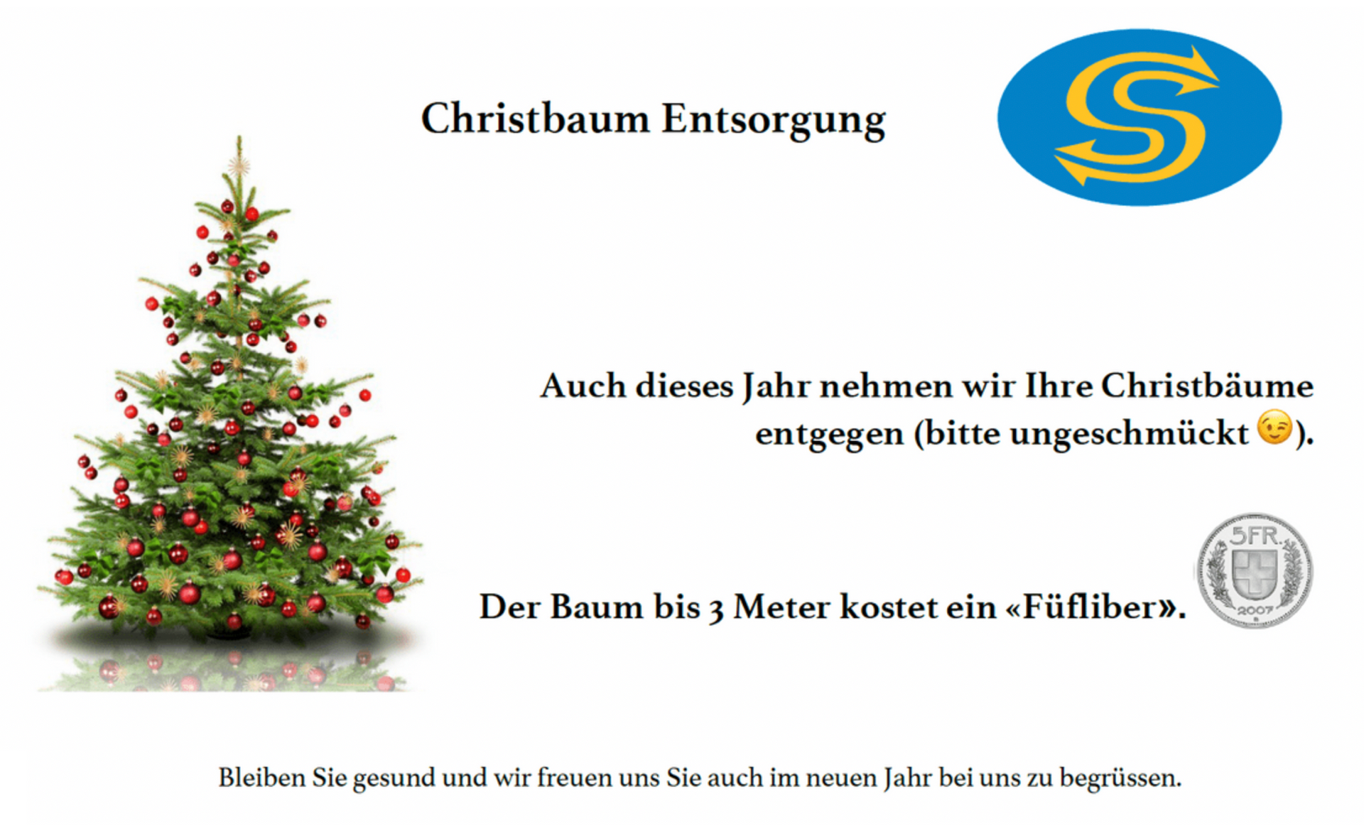 Bei uns kann man auch dieses Jahr Christbäume entsorgen.